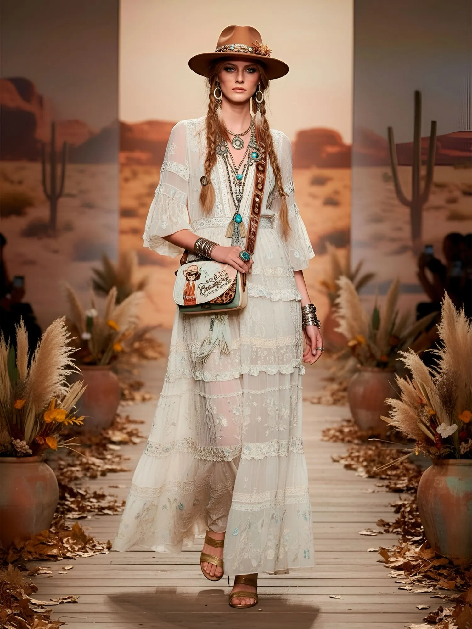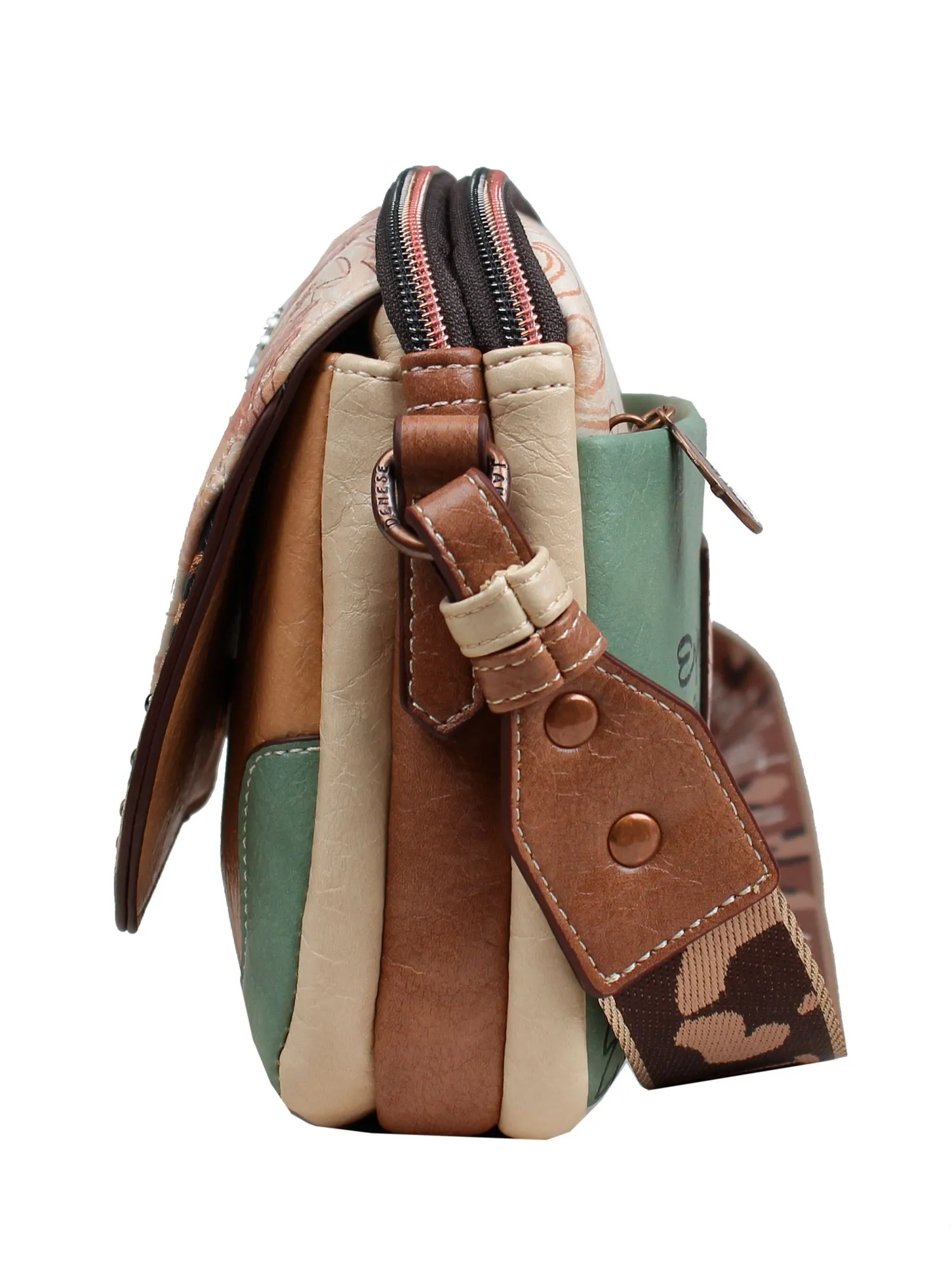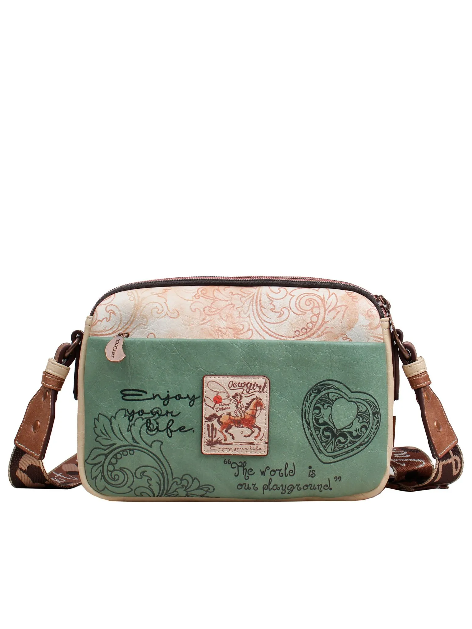 Модель выполнена из высококачественной экокожи с изысканным принтом в ковбойском стиле.