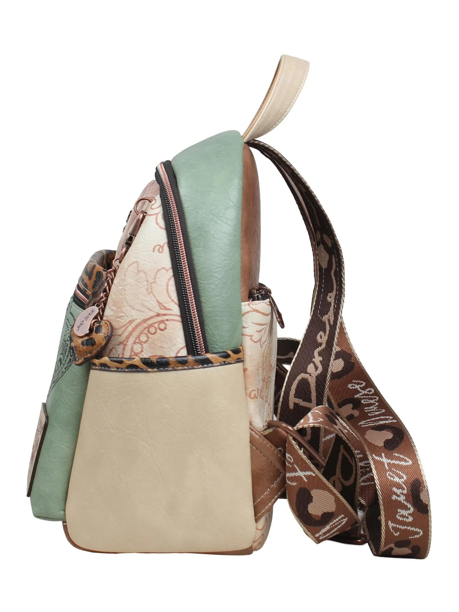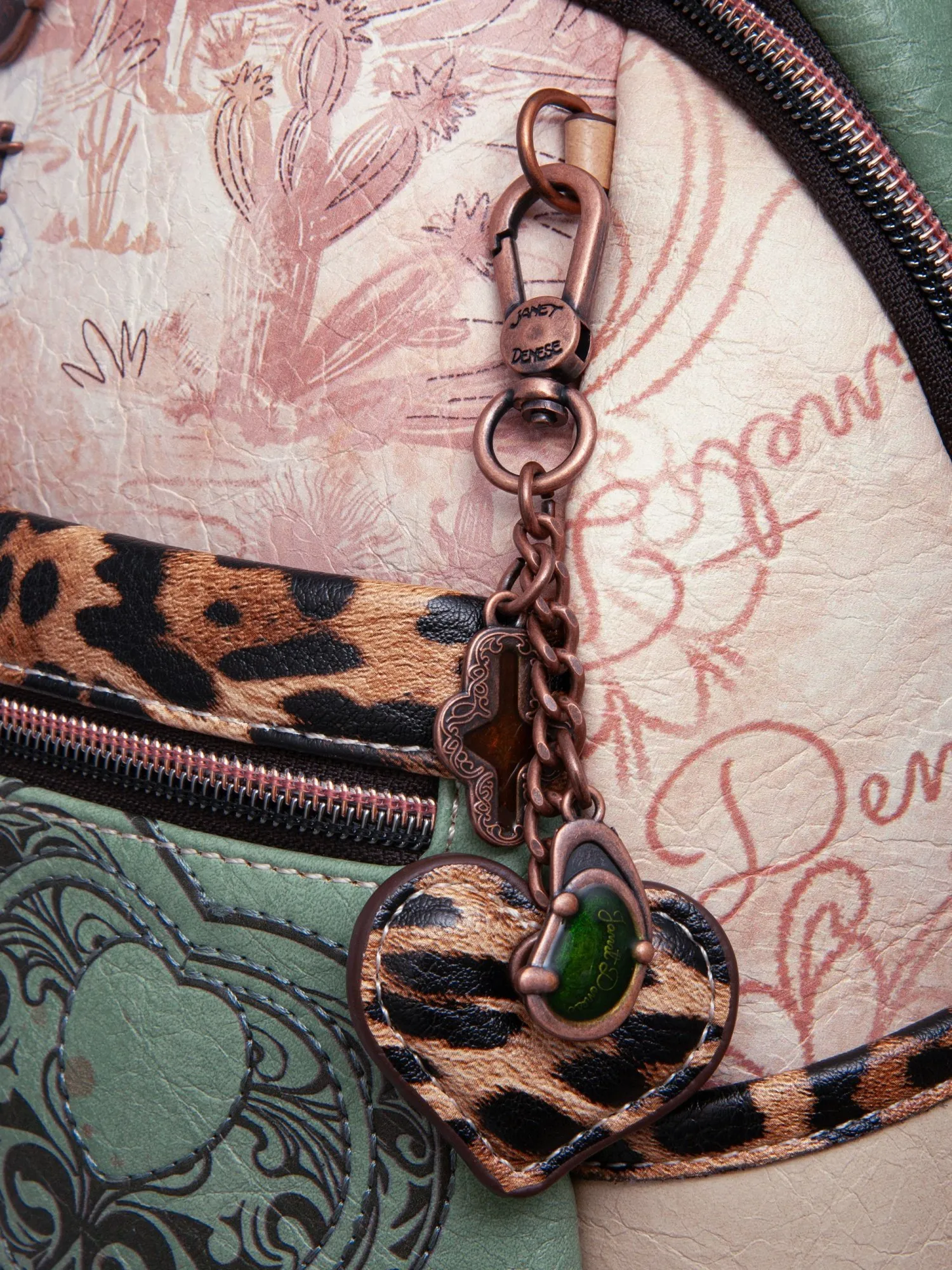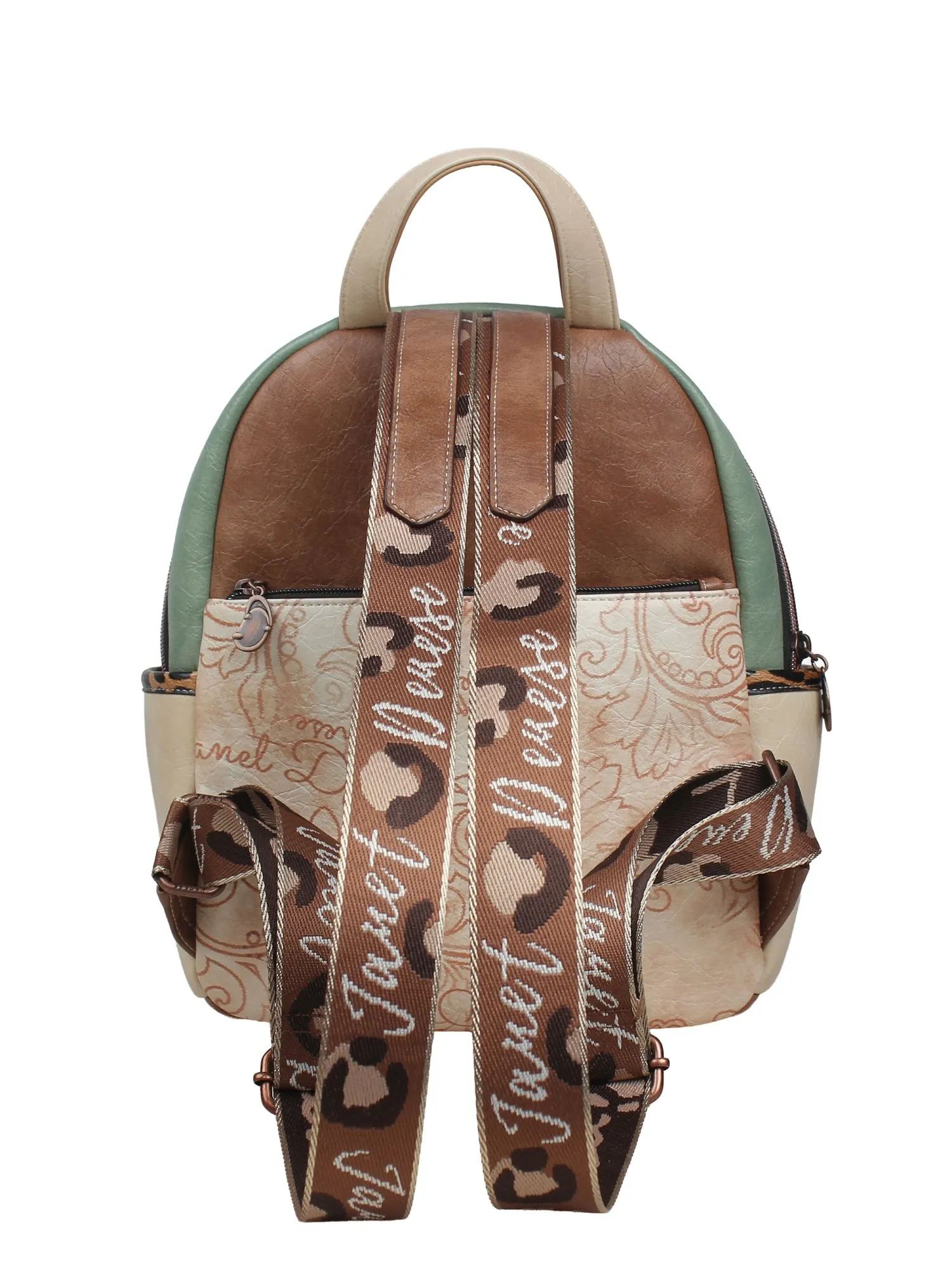 На внешней стороне рюкзака есть большой карман на молнии и скрытый большой карман для ценных вещей. На задней стороне рюкзака есть еще один карман на молнии. Основное отделение застегивается на молнию и открывает просторное внутреннее пространство с карманом на молнии и парой открытых карманов для идеальной организации мелочей. Рюкзак комплектуется двумя регулируемыми лямками (до 95 см) и крепкой короткой ручкой (21 см), предлагая комфортные варианты носки. Финальный штрих — тематический брелок и бегунки коллекции, подчеркивающие уникальность дизайна. Эстетичный дизайн Janet сочетается с модными деталями, что делает рюкзак привлекательным аксессуаром для городской жизни.