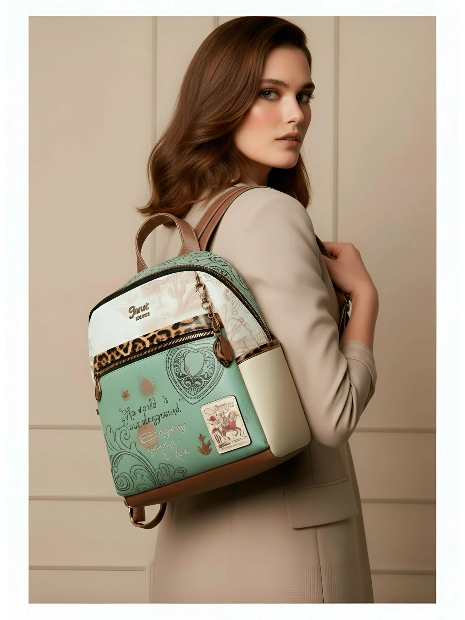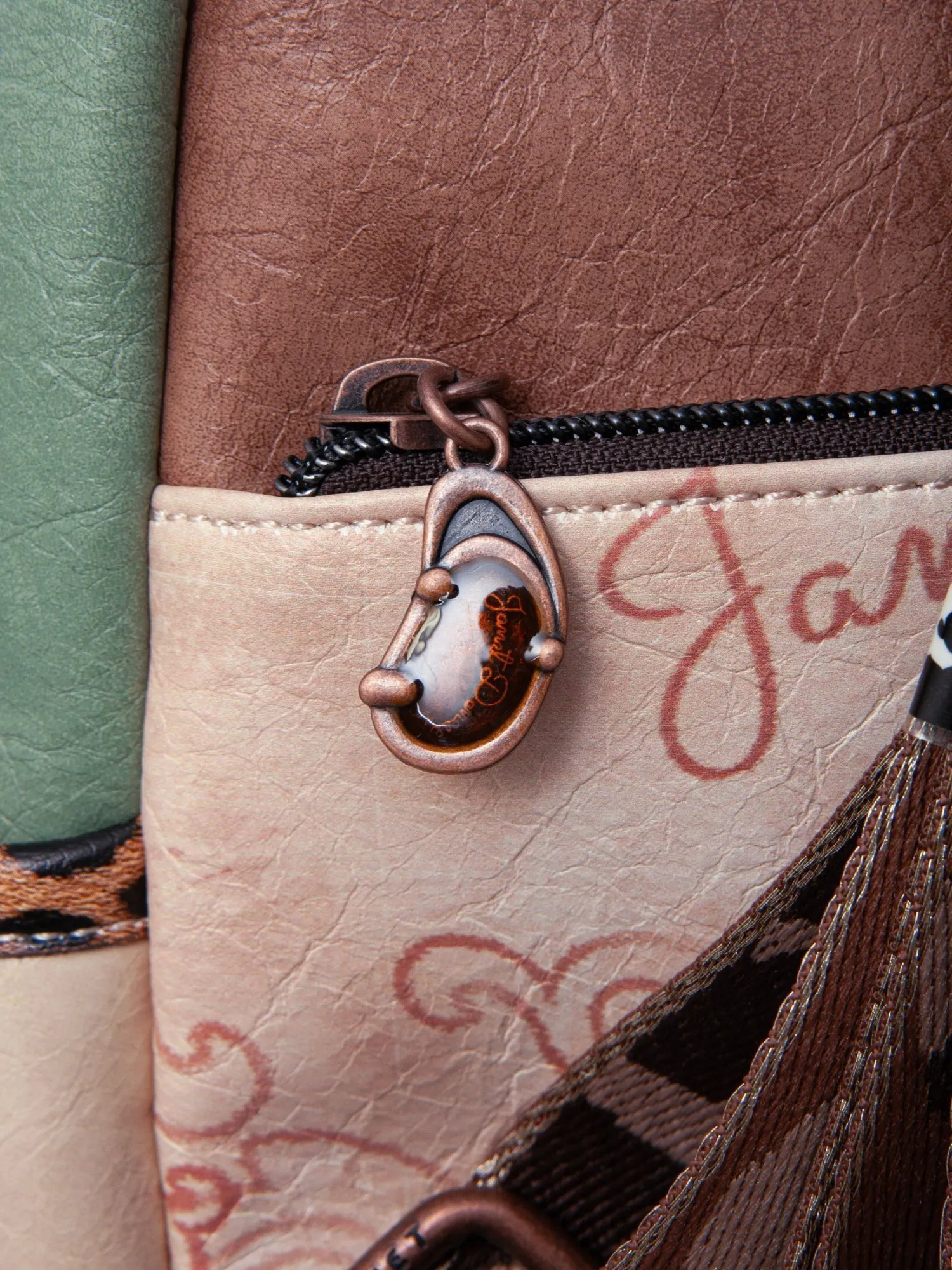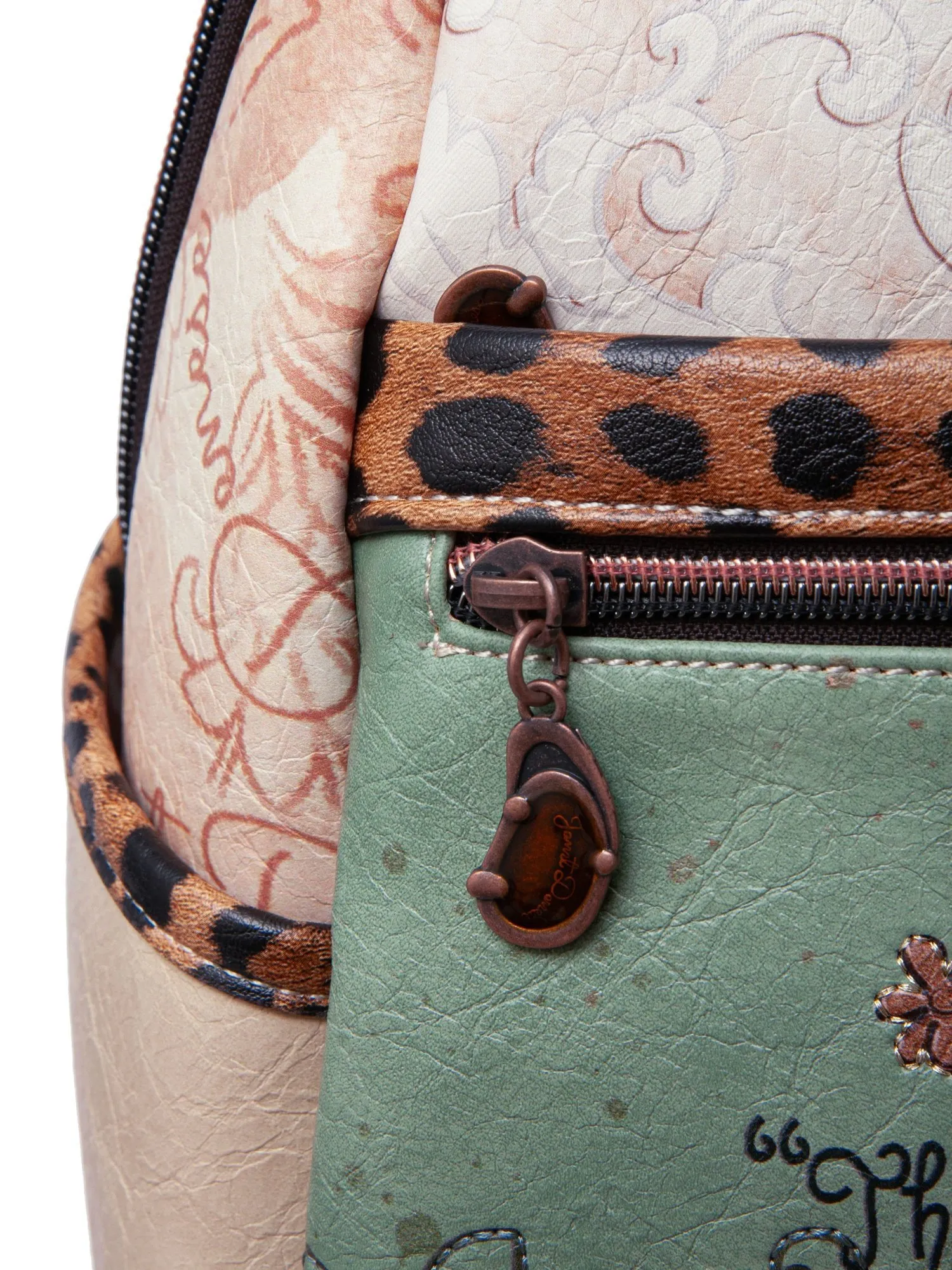 На внешней стороне рюкзака есть большой карман на молнии и скрытый большой карман для ценных вещей. На задней стороне рюкзака есть еще один карман на молнии. Основное отделение застегивается на молнию и открывает просторное внутреннее пространство с карманом на молнии и парой открытых карманов для идеальной организации мелочей. Рюкзак комплектуется двумя регулируемыми лямками (до 95 см) и крепкой короткой ручкой (21 см), предлагая комфортные варианты носки. Финальный штрих — тематический брелок и бегунки коллекции, подчеркивающие уникальность дизайна. Эстетичный дизайн Janet сочетается с модными деталями, что делает рюкзак привлекательным аксессуаром для городской жизни.