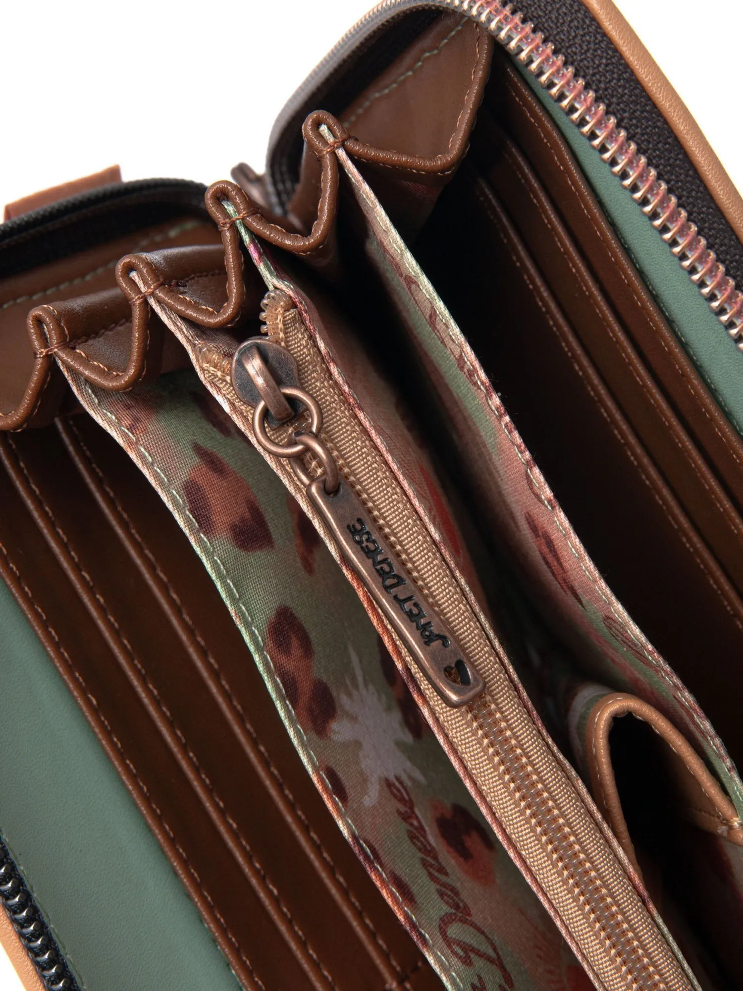 Женский кошелек большого размера на молнии от Janet. Он обладает множеством отделений и карманов, чтобы удобно разместить все необходимые вещи. Внутри вы найдете целых 7 отделений для купюр, карточек, монет и прочих мелочей, благодаря чему у вас всегда будет под рукой все необходимое. На задней стороне кошелька есть кармашек на молнии для монет, который поможет вам сохранить порядок и не потерять мелочь.