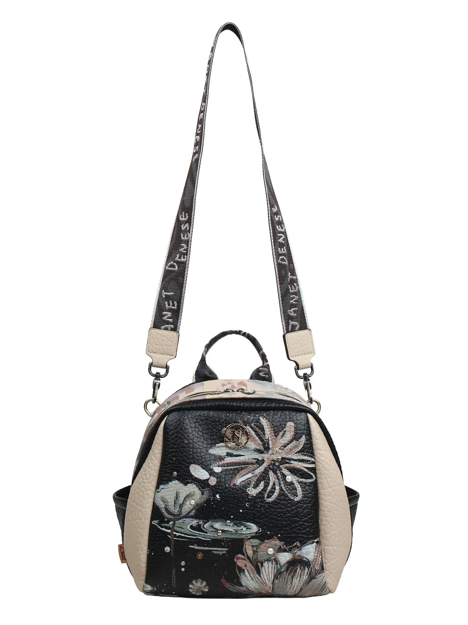 Рюкзак Janet станет отличным выбором для ежедневного использования. Его повседневный стиль позволяет сочетать аксессуар с разными образами женщин и подростков. Модные элементы дизайна делают рюкзачок эстетичным и привлекательным для тех, кто ценит стильные детали. Спереди рюкзак украшен вышивкой, клепками со стразами и бусинами. По бокам рюкзака пара открытых карманов, в которые удобно полоить салфетки или маленькую бутылочку с водой. На задней стороне рюкзака карман на молнии. Благодаря вместительному внутреннему отделению можно удобно разместить необходимые вещи, включая тетради формата А5 или аксессуары для ноутбука. Дополнительный ремень на карабинах позволяет носить рюкзак как сумку кросс-боди. Женский вариант этой сумки-рюкзака подходит как для прогулок погороду, так и для учебы или работы. Средняя по размеру модель сочетает в себе функциональность и компактность, позволяя носить с собой все необходимое, не перегружая образ. Такой аксессуар понравится подростку, который ищет универсальное решение для школы или досуга. Удобная форма обеспечивает комфорт при длительном ношении, а аккуратный внешний вид подчеркивает индивидуальность. Рюкзачок легко комбинируется с разными образами, дополняя повседневный гардероб. Сумочки такого типа — практичный выбор для активных женщин, которым важно всегда иметь под рукой нужные вещи. Эстетичный дизайн Janet сочетается с модными деталями, что делает рюкзак привлекательным аксессуаром для городской жизни.