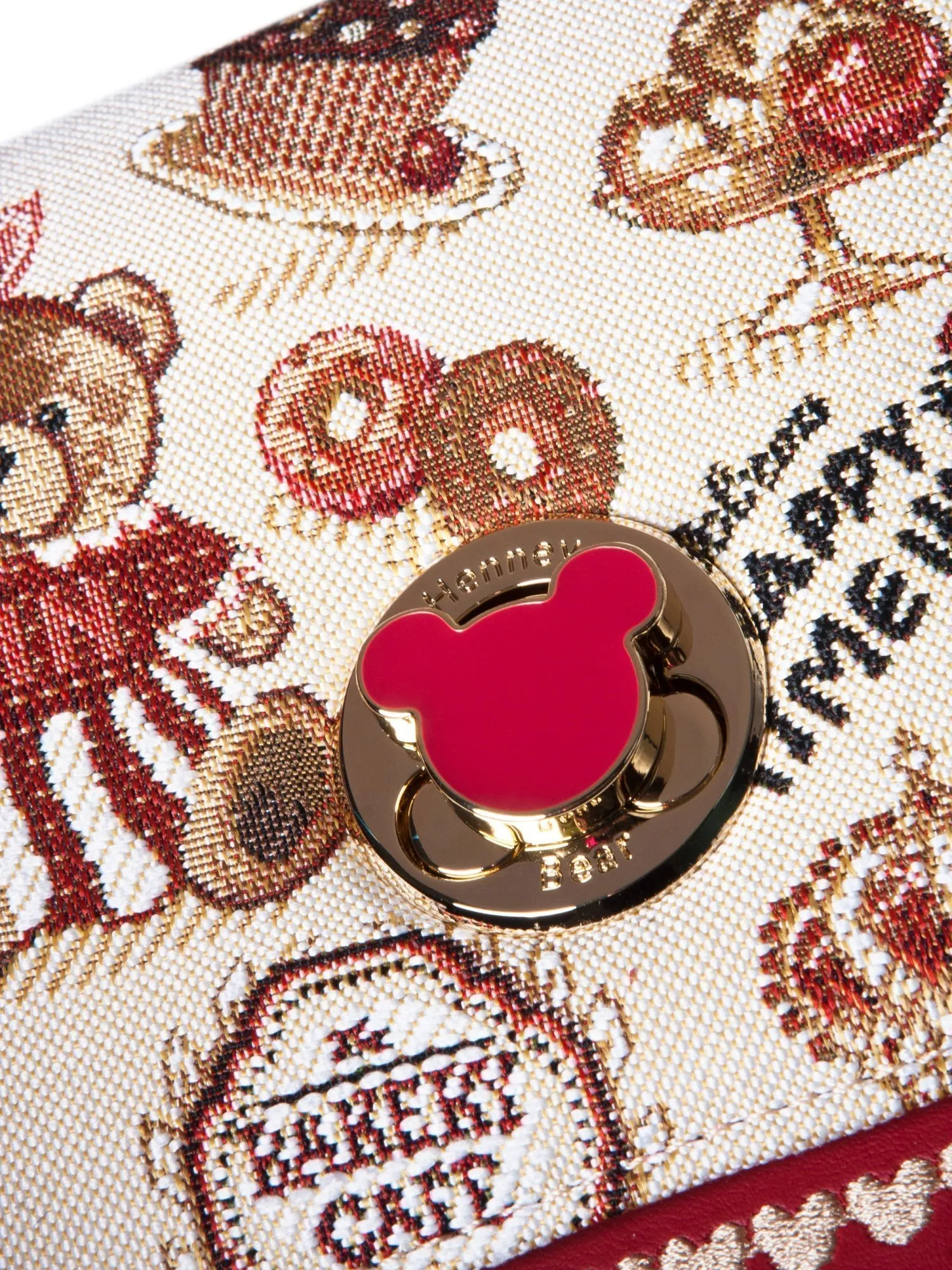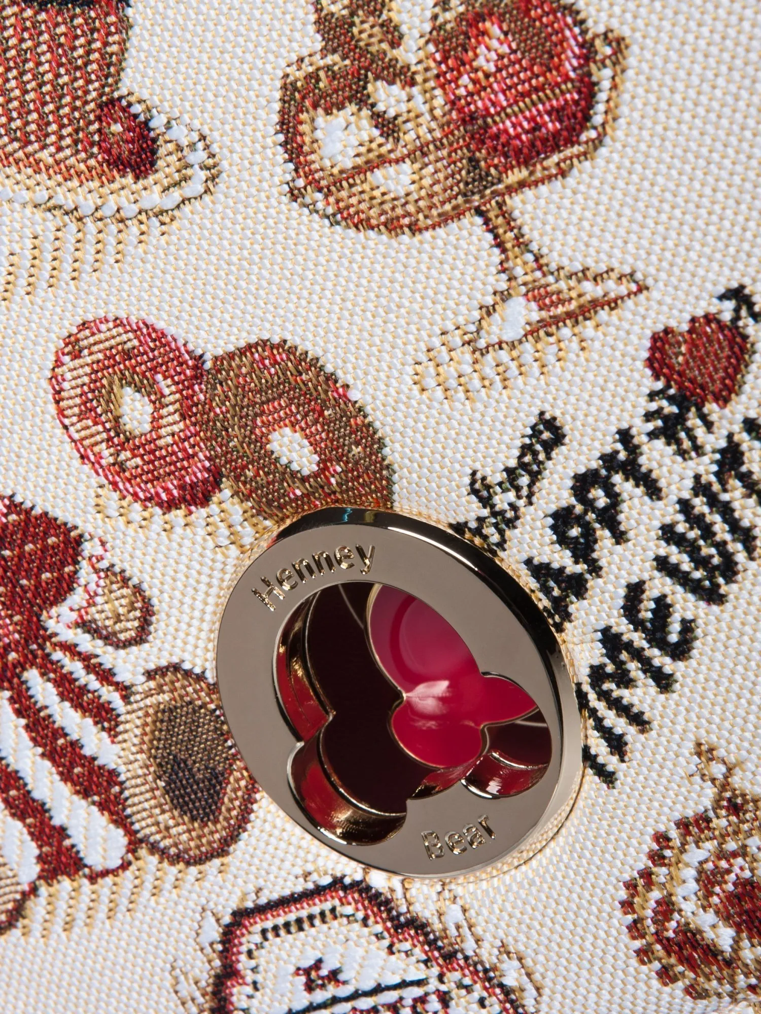 Встречайте задорного мишку Henney Bear! Перед вами стильная сумочка кросс-боди на цепочке с карабинами и удобной короткой ручкой. Дизайн лаконичен, но не без интересных деталей: фирменный принт и элегантные бегунки с профилем медвежонка. Основное отделение закрывается на милейший замочек с ушастым мишкой. Внутри два отделения, карман на молнии, а также карман перегородка. Для всевозможных карточек, ключей или телефона на оборотной стороне сумки есть небольшой карман на молнии. Яркие тона и задорные принты - то что нужно для украшения гардероба!
